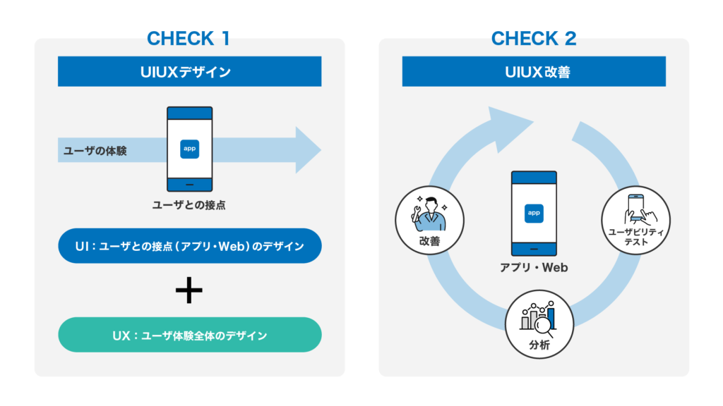 こうした背景から、「使いやすさ(ユーザビリティ)」と「体験」の両面を丁寧に設計するUIUXデザインが必要となります。